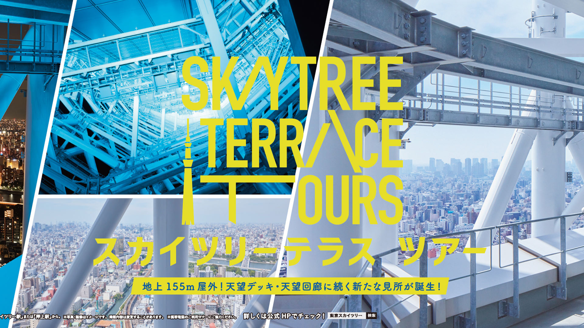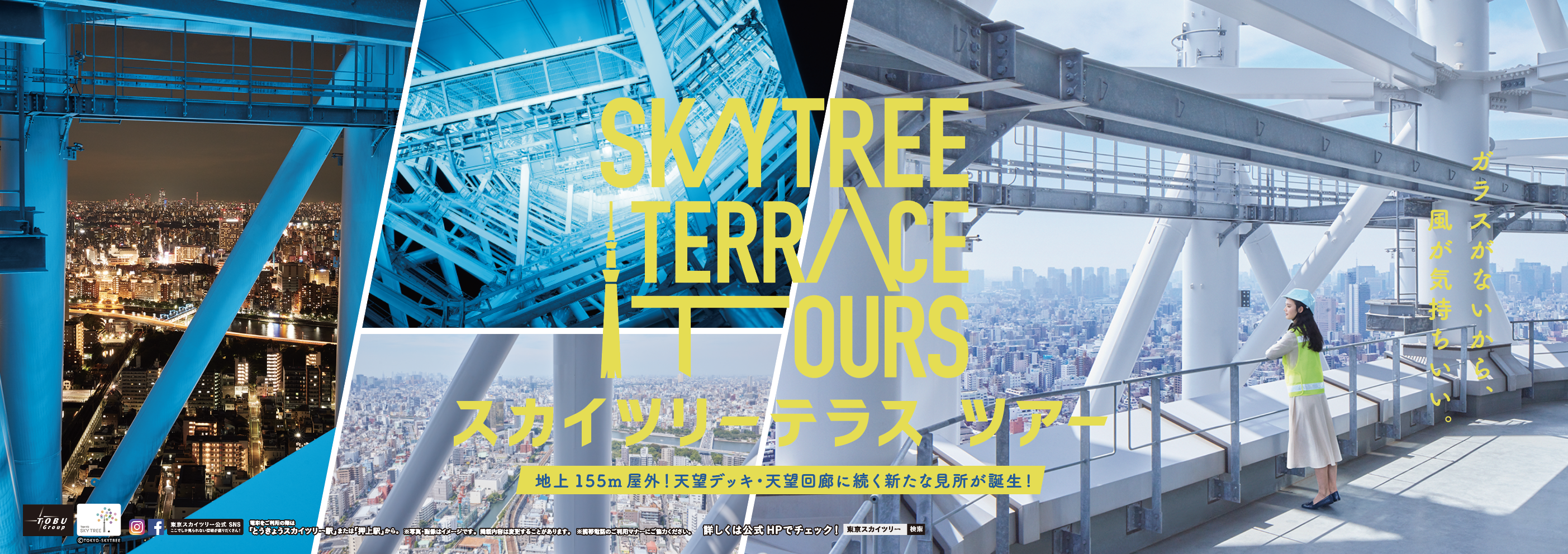 2018年にオープンした東京スカイツリー®︎の新スポット「SKYTREE TERRACE TOURS」のネーミング開発・ビジュアル、ロゴ制作を担当。広告からツアーツールのデザインに展開しました。