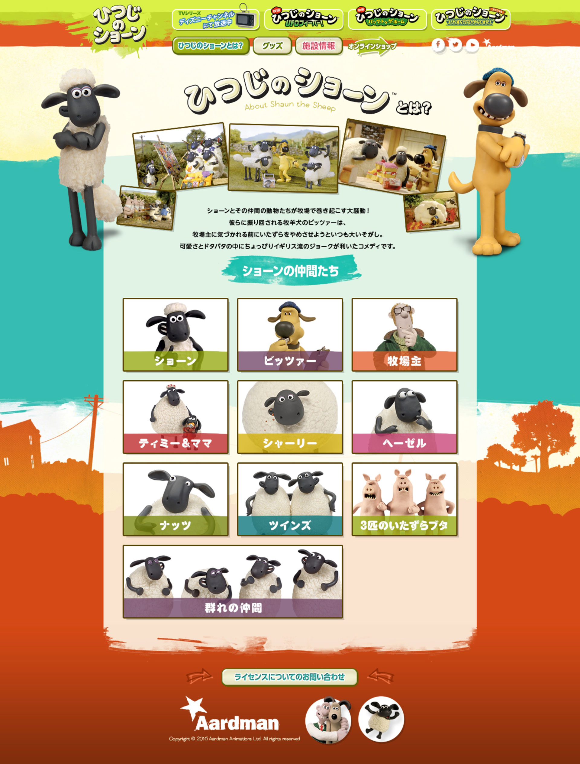 『ひつじのショーン』『ウォレスとグルミット』『こひつじのティミー』の、キャラクターグッズ情報に関する日本公式サイトの制作を担当しています。