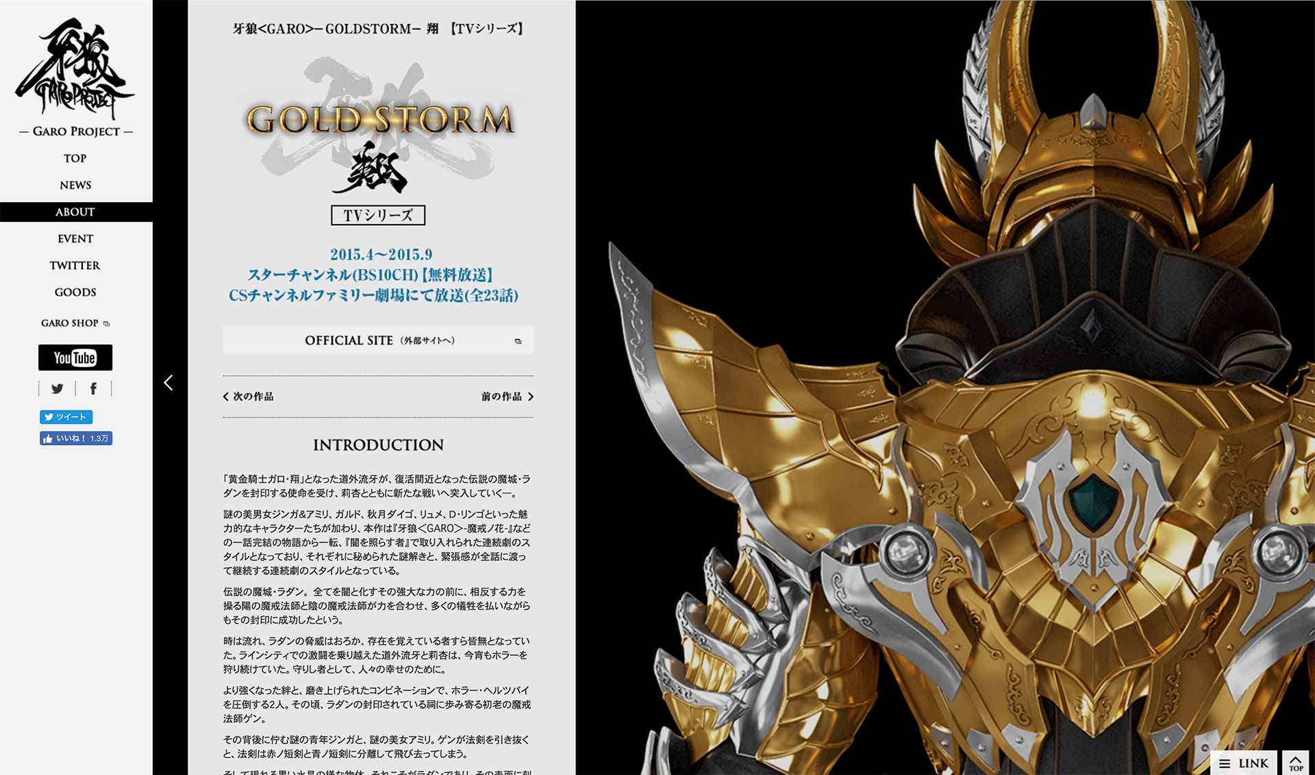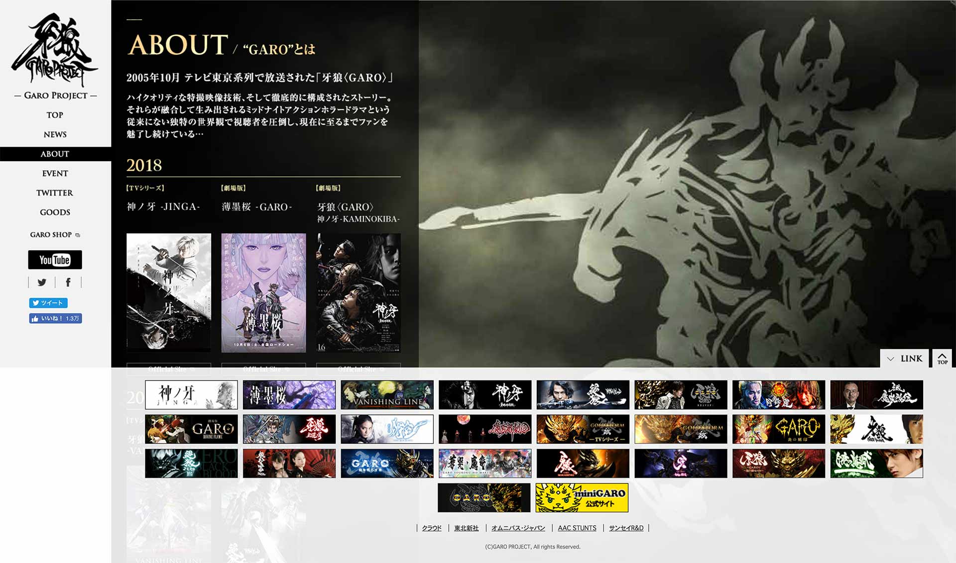2005年初放送以来、長く愛着を頂いている、牙狼<GARO>プロジェクトのサイト制作を担当しています。