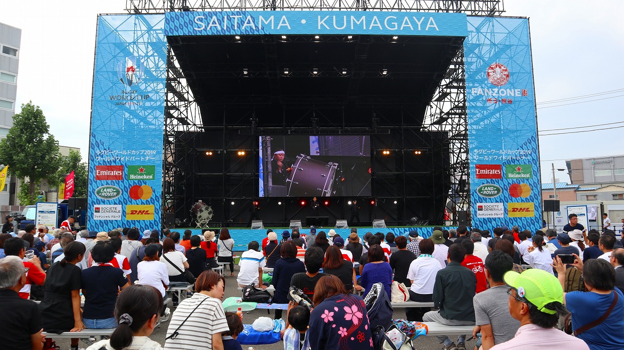 ラグビーワールドカップ2019期間中の合計10日間、埼玉・熊谷会場のファンゾーン(各開催都市で設置するパブリックビューイングスペース)の運営を担当。10日間で7万人超が来場しました。